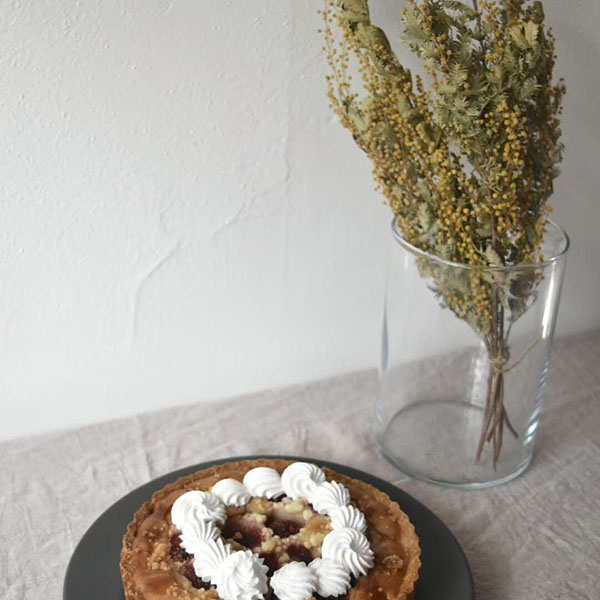 お祝いや、自分へのご褒美になるような、そんなケーキがあったら良いよね と生まれたのがこちらのタルト。デコレーションはシンプルにすることで、ご自身でフルーツやナッツを乗せて、アレンジしてお召し上がりいただけます。